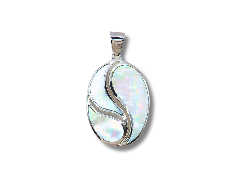 Anhänger aus Sterlingsilber mit schimmerndem Perlmutt und einer Höhe von 35 mm.